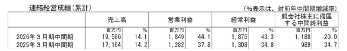 当中間連結会計期間(2025年4月1日から2025年9月30日)の実績は下記の通りとなりました。